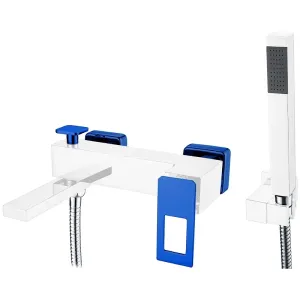 Смеситель Boheme Q для ванны, с душевым гарнитуром, хром, синий, 143-CRBlue
