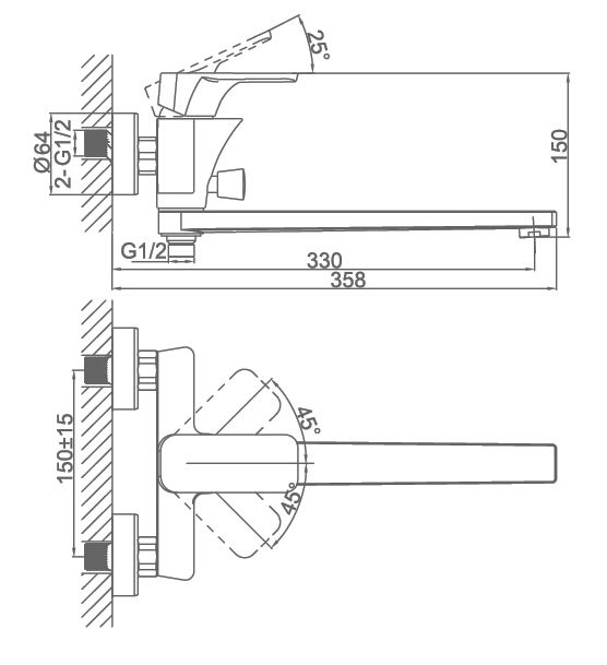 Смеситель для ванны DQ Berlin Technische чёрный/хром DA1433315