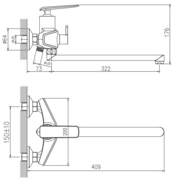 Керамический картридж 35 мм.Диаметр декоративных чашек 70 мм.Душевой гарнитур в комплекте.Межосевое расстояние (расстояние между выходом горячей и холодной трубы) 150 мм.Данное расстояние изменяется за счет входящих в комплект эксцентриков на 10 мм в большую или меньшую стороны.