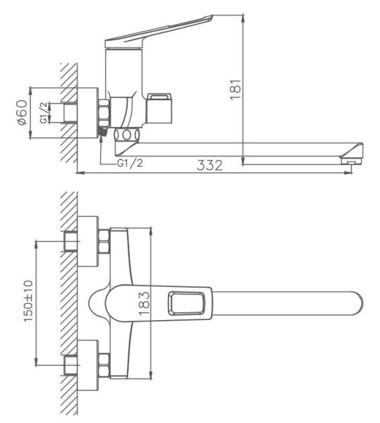 Керамический картридж 35 мм.Диаметр декоративных чашек 70 мм.Душевой гарнитур в комплекте.Межосевое расстояние (расстояние между выходом горячей и холодной трубы) 150 мм.Данное расстояние изменяется за счет входящих в комплект эксцентриков на 10 мм в большую или меньшую стороны.
