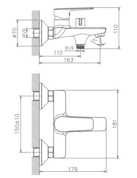 Керамический картридж 35 мм.Диаметр декоративных чашек 70 мм.Душевой гарнитур в комплекте. Межосевое расстояние (расстояние между выходом горячей и холодной трубы) 150 мм.Данное расстояние изменяется за счет входящих в комплект эксцентриков на 10 мм в большую или меньшую стороны.