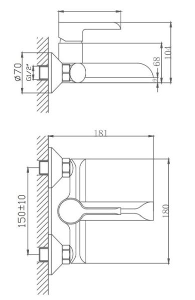 Керамический картридж 35 мм.Диаметр декоративных чашек 70 мм.Душевой гарнитур в комплекте.Межосевое расстояние (расстояние между выходом горячей и холодной трубы) 150 мм.Данное расстояние изменяется за счет входящих в комплект эксцентриков на 10 мм в большую или меньшую стороны.