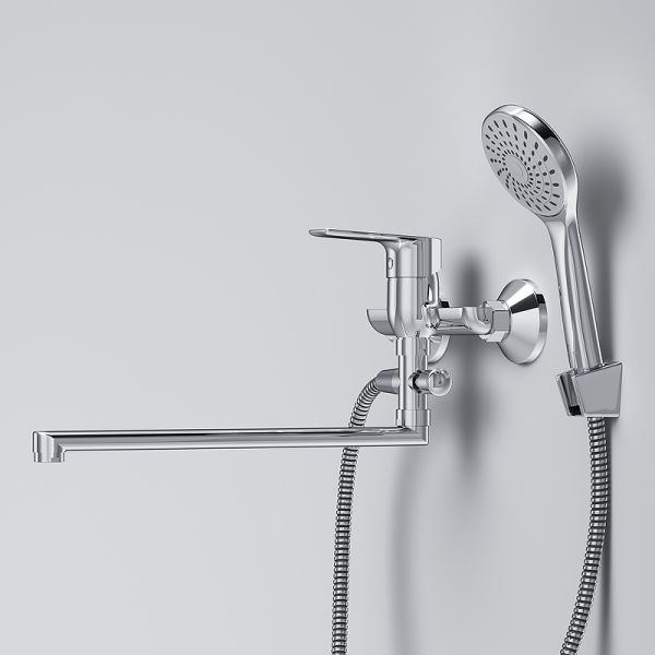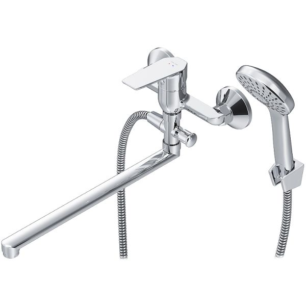 Смеситель для ванны AM.PM Gem F90A90100 универсальный с душевым гарнитуром.Стильное универсальное решение для ванной комнаты - качественный смеситель для ванны и душа с длинным поворотным изливом с душевым набором. Универсальный длинный излив позволяет использовать смеситель как для ванны, так и для рядом стоящей раковины. Функциональный держатель для ручного душа на два положения добавит удобства использования. Душевой шланг длиной 150 см позволит наслаждаться душем даже высокому человеку. Максимум функций за разумную плату в одном изделии! Ультрамодный дизайн ручки придает смесителю дополнительную динамику и дарит непревзойденную легкость управления. Вы почувствуете это с первого прикосновения. Точная инженерия для Вашего комфорта: благодаря обширной зоне движения ручки управлять температурой воды стало еще проще.