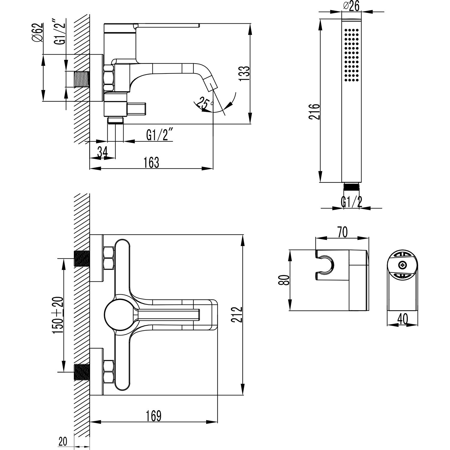 Смеситель для ванны и душа Azario VINCENTE AZ-VRZ2338326PA с ручным душем
