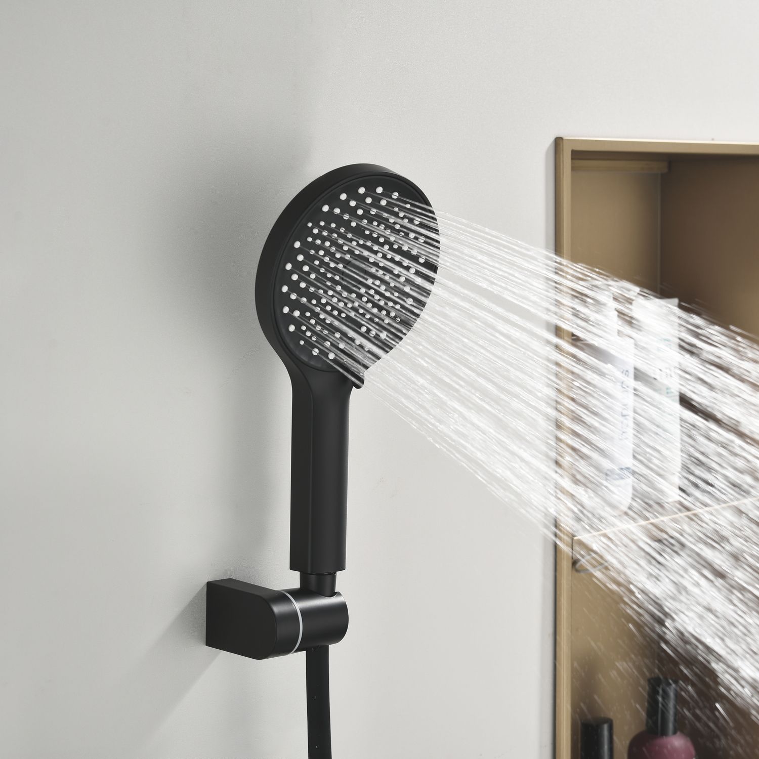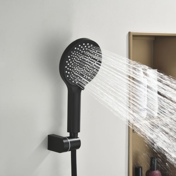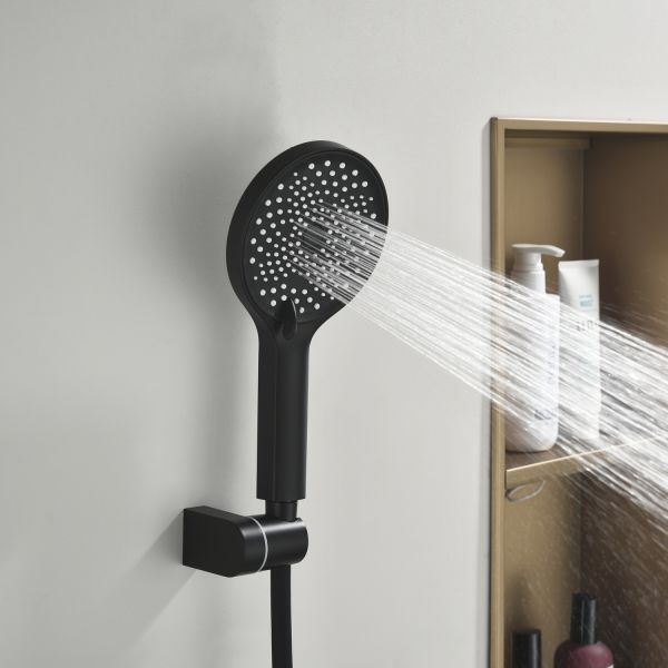 Душевая стойка производителя Black&White черного матового цвета. Корпус изделия изготовлен из сантехнической латуни, материал высокоресурсный и безопасный для здоровья. Управление потоками воды осуществляется с помощью керамического картриджа повышенной пропускной способности.Из потребителей на стойке установлен верхний душ, ручная лейка с режимами и излив, интегрированный в фронтальную часть корпуса. Для выбора режима работы установлен поворотный механический дивертор цилиндрической формы с насечками на корпусе для удобства использования мокрыми руками.Простые геометрические линии продукта гармонично встроятся в лаконичные интерьеры ванной комнты.
