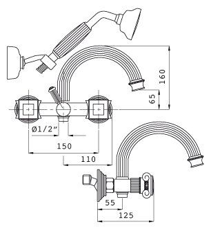 Смеситель для ванны и душа Cezares APHRODITE-V-03/24-M