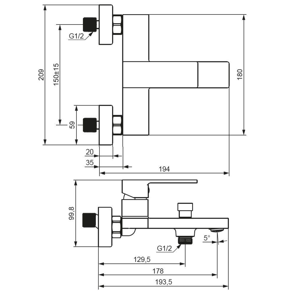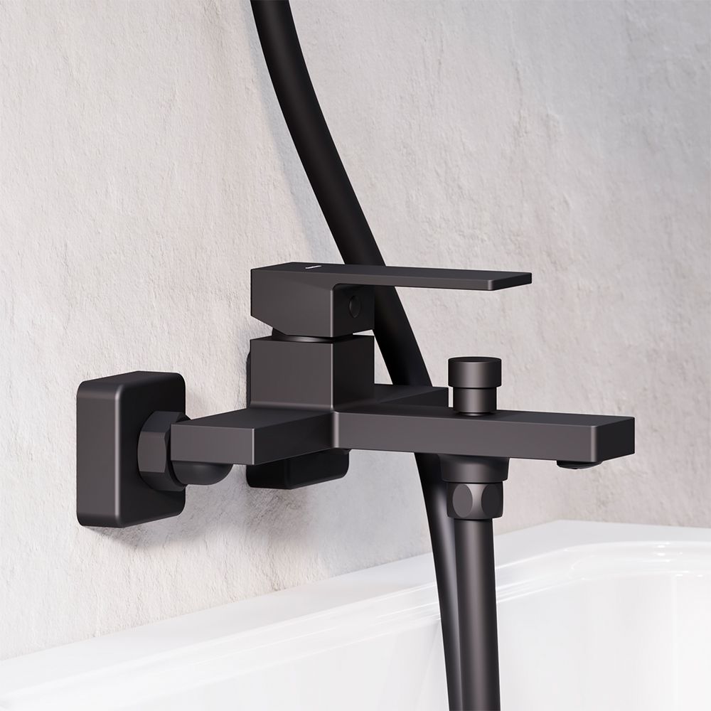 Смеситель для ванны и душа Damixa Gala 531000300 черныйКорпус смесителя 1 шт.; эксцентрические переходники 2 шт.; декоративные розетки 2 шт.; инструкция изделия. Черный матовый, смеситель для ванны и душа, строгие прямоугольные формы, вакуумный дивертер