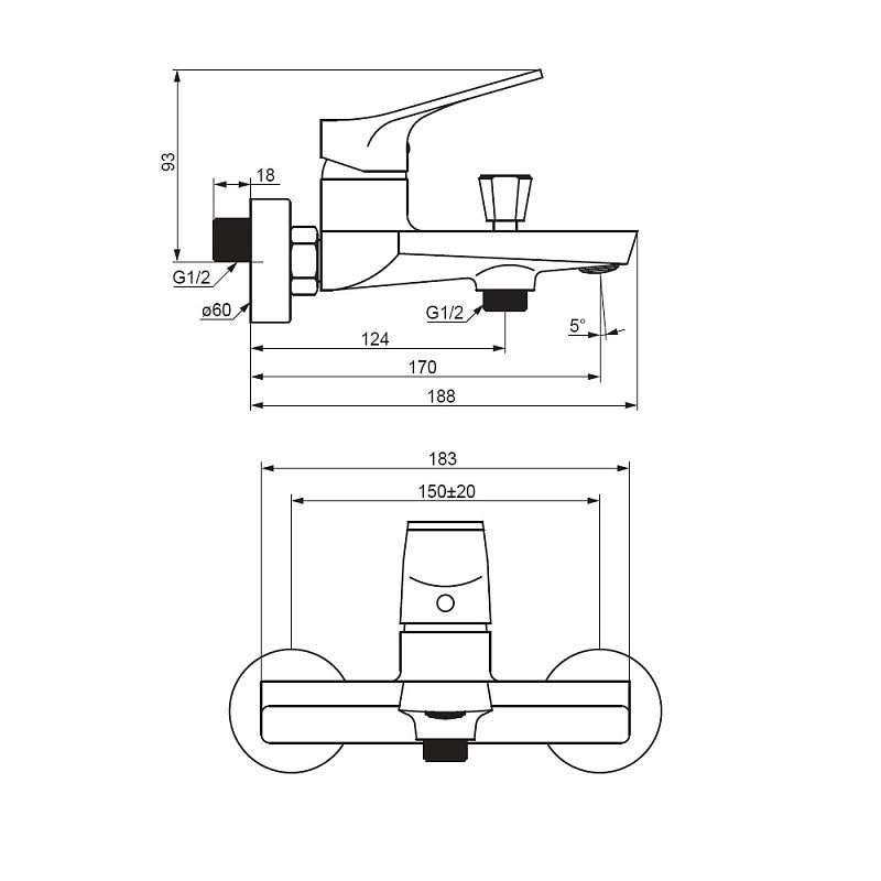 Смеситель для ванны и душа Damixa Merkur 401000000 хром