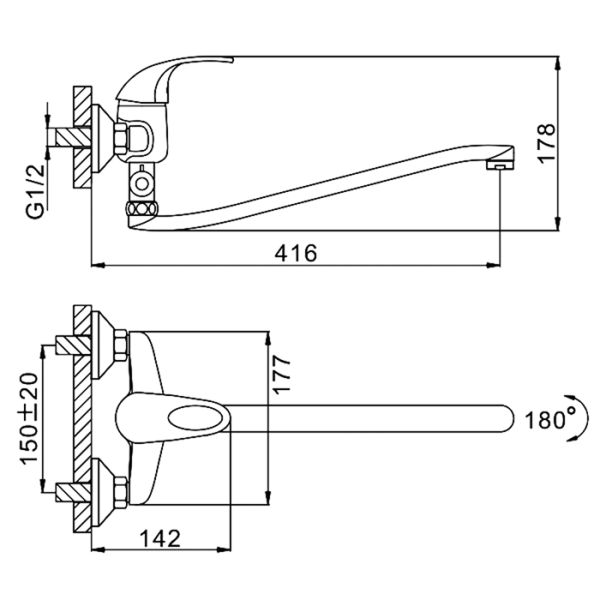 Способ монтажа:На два отверстия, Настенные