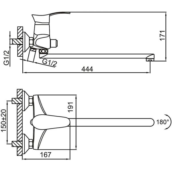 В комплекте:Душевой шланг 150 см, Душевая лейка, Держатель лейки, Комплект отражателей, Комплект эксцентриков