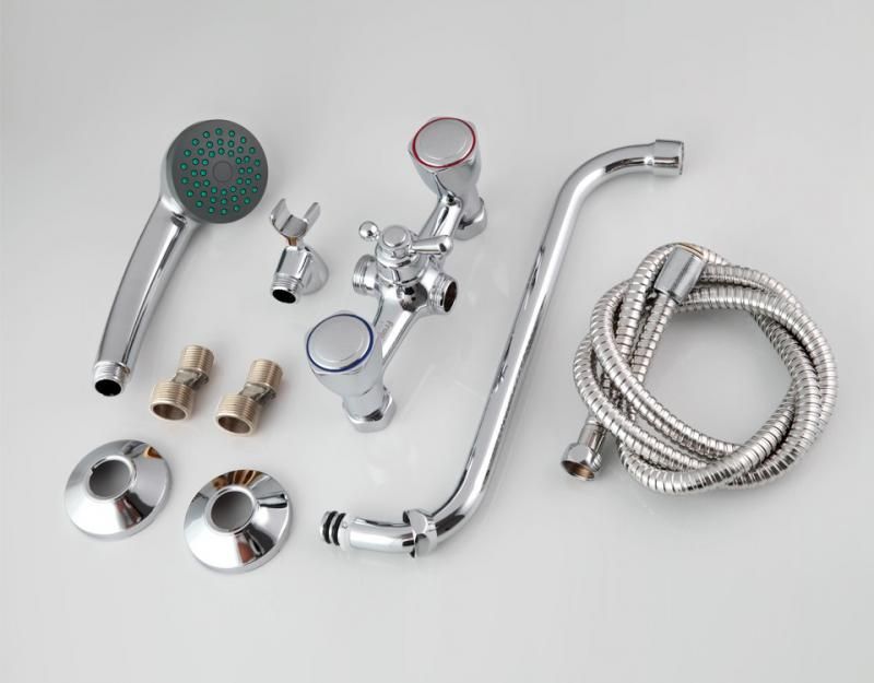В комплекте:Душевой шланг 150 см, Душевая лейка, Держатель лейки, Комплект отражателей, Комплект эксцентриков