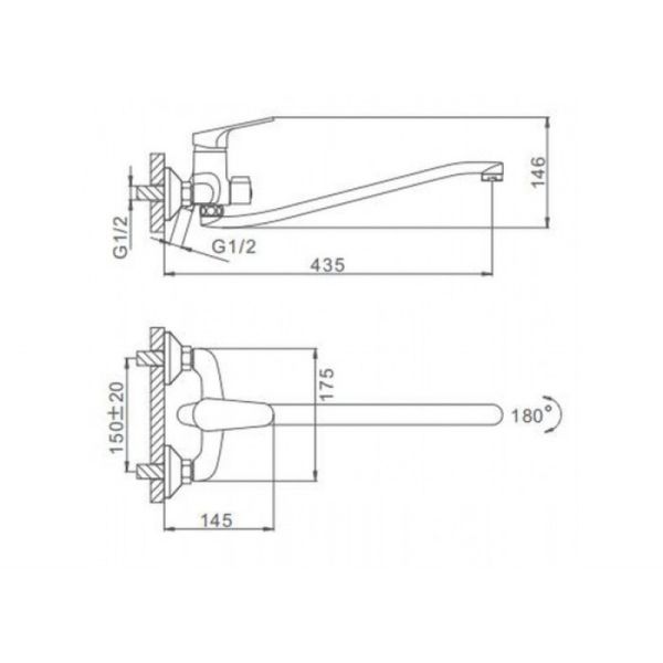 F2216 (смес. хром. д/ван. Ф35. излив 40S -2. переключение душ - корпус/дивестор/кранбукса)