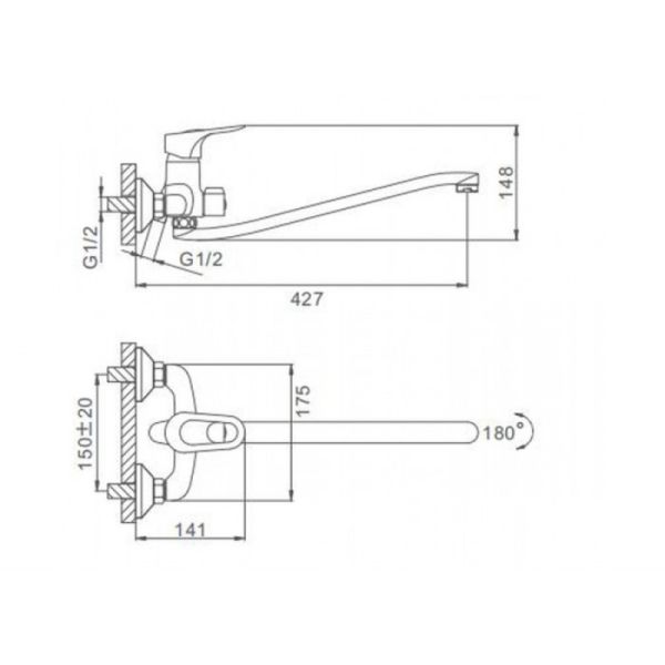 F2237 (смес. хром. д/ван. Ф35. излив 40S -2. переключение душ - корпус/дивестор/кранбукса)