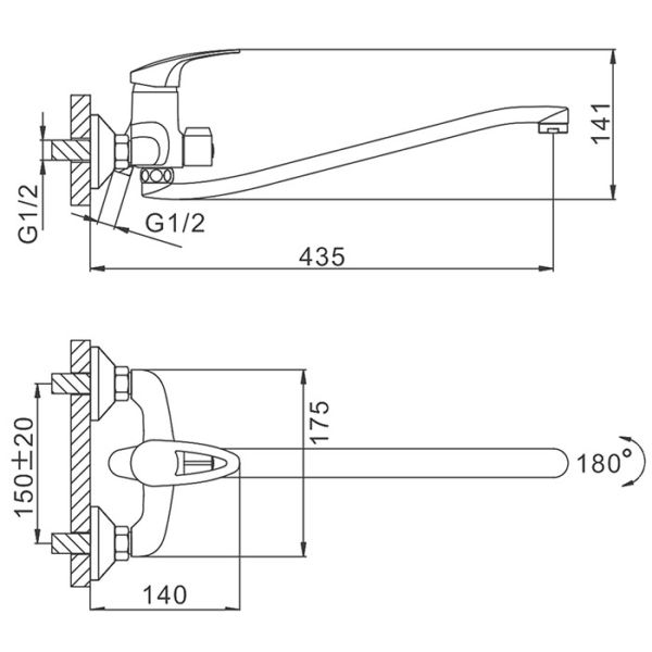 Длина излива, см:43.5