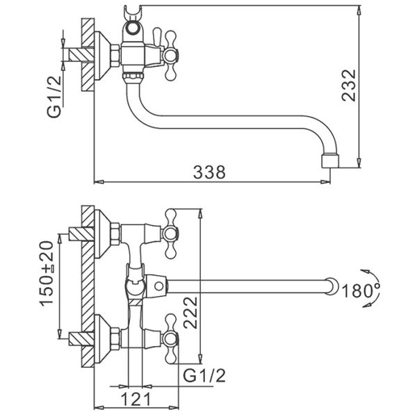 Способ монтажа:На два отверстия, Настенные