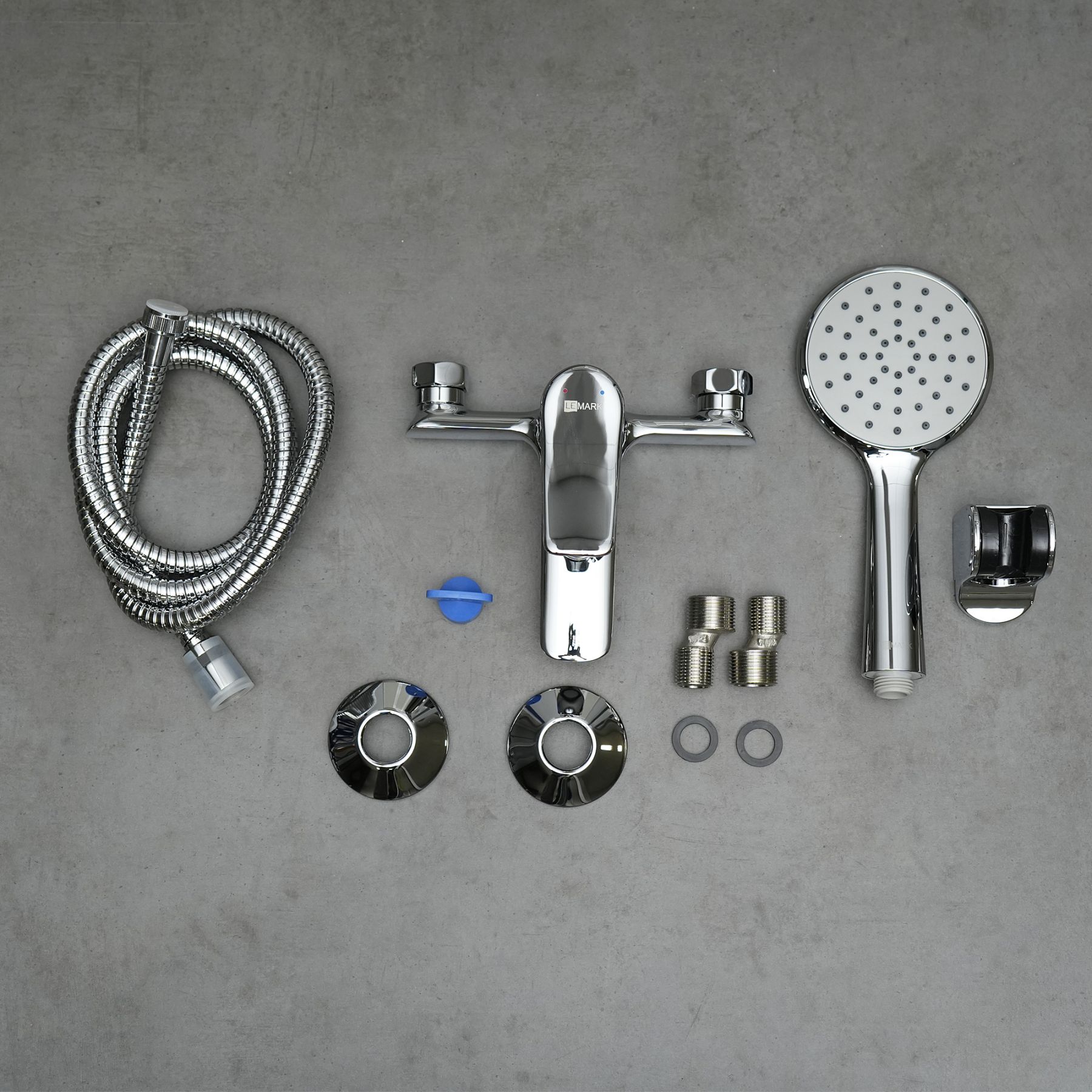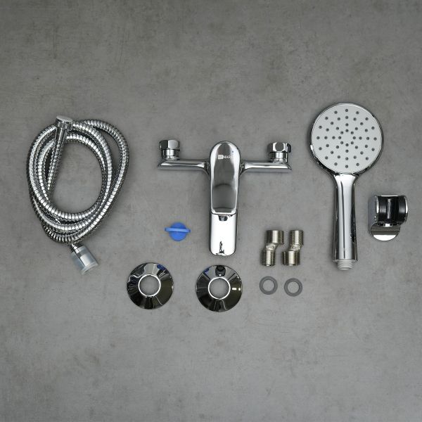 - Аксессуары в комплекте: 1-функциональная лейка Ø106×235 мм, настенное поворотное крепление, душевой шланг 1,5 м