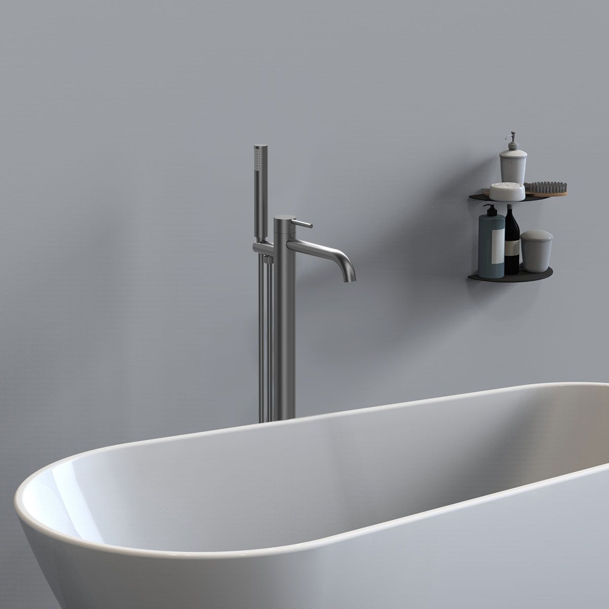 Смеситель для ванны напольный Vincea Desire VTF-1DGM с регулятором давления, однорычажный, вороненая сталь купить