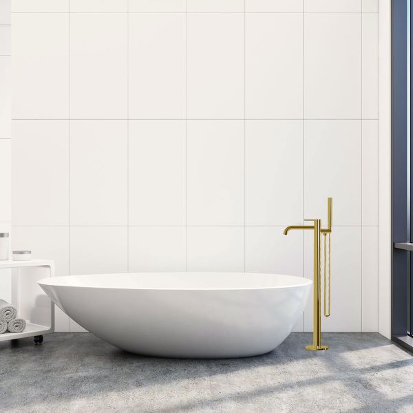 Смеситель для ванны напольный Vincea Desire VTF-1DBG однорычажный, с регулятором давления, брашированное золото