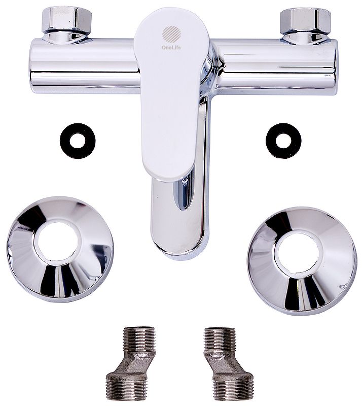Полимерный смеситель OneLife P07-100cr для ванны и душа, хромОднозахватный полимерный смеситель для ванны/душа с фиксированным изливом OneLife P07-100cr гармонично дополнит интерьер ванной комнаты в современном или традиционном стиле. Фирменный картридж Orange обеспечит легкое управление напором и температурой воды. Вместо привычного латунного сплава он изготовлен из запатентованного высокотехнологичного полимера (выдерживает 510 000 циклов и 53 АТМ без замены изделия после теста на цикличность, исключает возможность обжечься при касании, не подвержен коррозии и окислению, стойкий к отрицательным температурам), что обеспечивает срок службы более 15 лет. Встроенный аэратор экономит воду и, обогащая струю воздухом, делает её мягкой и без брызг. Переключение между режимами душ/ванна осуществляется с помощью вытяжного дивертора. Цвет глянцевый хром.Комплект поставки: смеситель, отражатели, эксцентрики, инструкция.