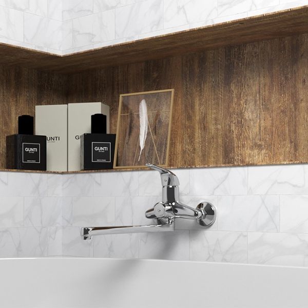 Смеситель для ванной - представитель коллекции Trento, дизайн которого рожден в сердце Италии. Мобильный длинный излив 30 см позволяет использовать один смеситель под все нужды - умыться, принять душ, набрать ванную. Удобный простой в использовании флажковый дивертор для переключения потоков воды. Любителям понежиться в ванной придется по вкусу тот факт, что при наполнении самой ванны с таким смесителем процедура происходит гораздо приятнее т.к. теплая вода равномернее распределяется по всему занимаемому объёму практически от центра. В то время как при использовании смесителя с коротким изливом движение потока теплой воды происходит от основания ванной.