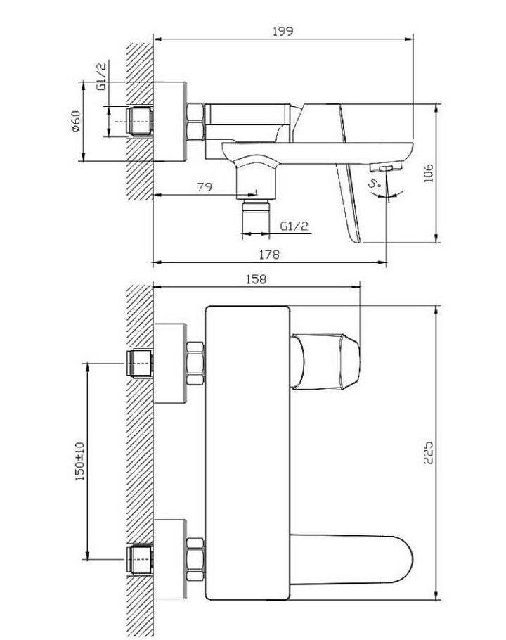 Смеситель для ванны Raglo R31.30.06.Цвет: черный.Материал: латунь.Управление: однорычажное.Механизм: керамический картридж.Излив: поворотный. Аэратор.Стандарт подводки: G 1/2.Отверстия для монтажа: 2.Монтаж: на стену.