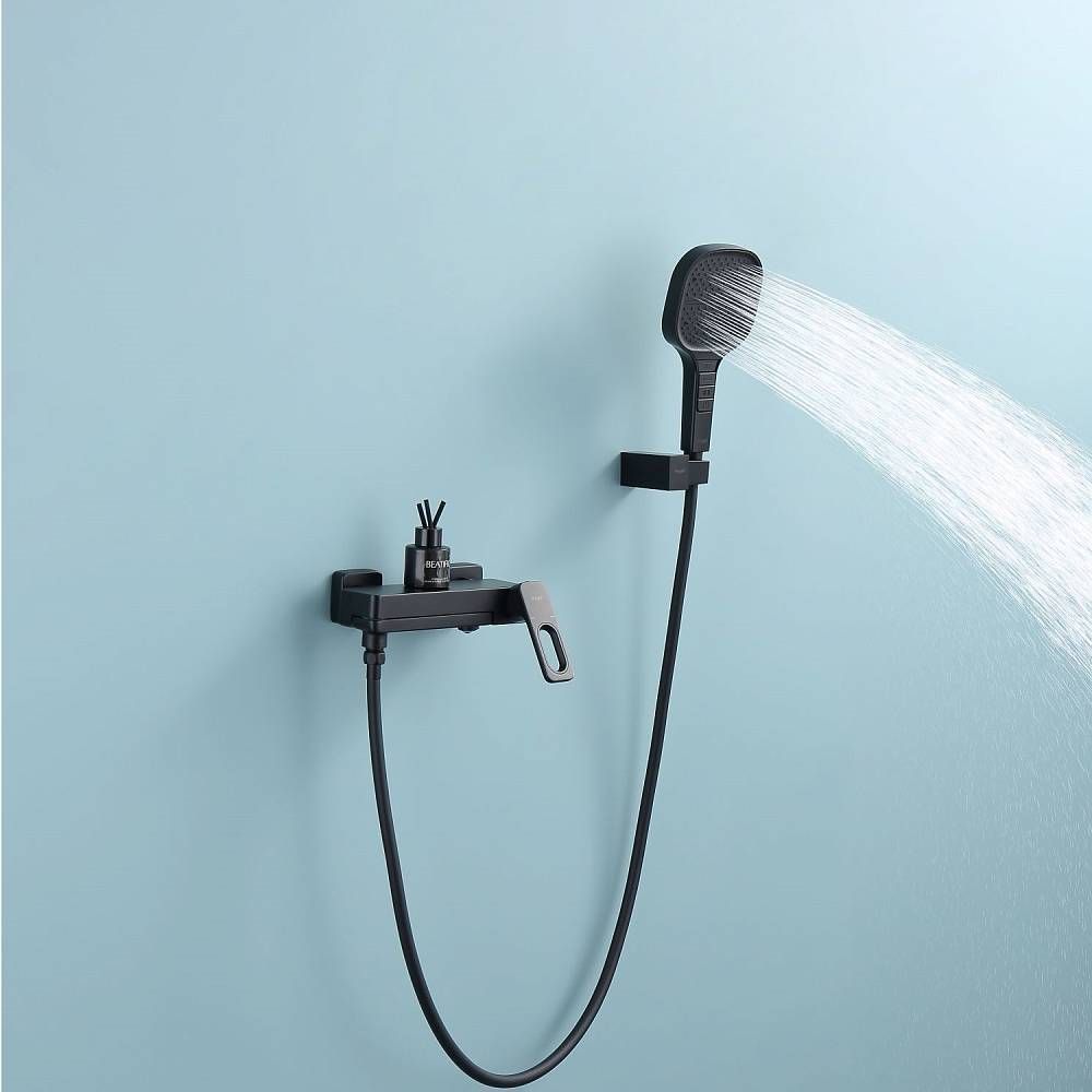 Смеситель для ванны Raglo R51.30.06 с душевым гарнитуром.Цвет: ччерный.Материал: латунь.Управление: однорычажное.Механизм: керамический картридж.Излив: поворотный. Аэратор.Количество режимов струи ручного душа: 4.Переключение режимов ручного душа: кнопочное.Стандарт подводки: G 1/2.Отверстия для монтажа: 2.Монтаж: на стену.
