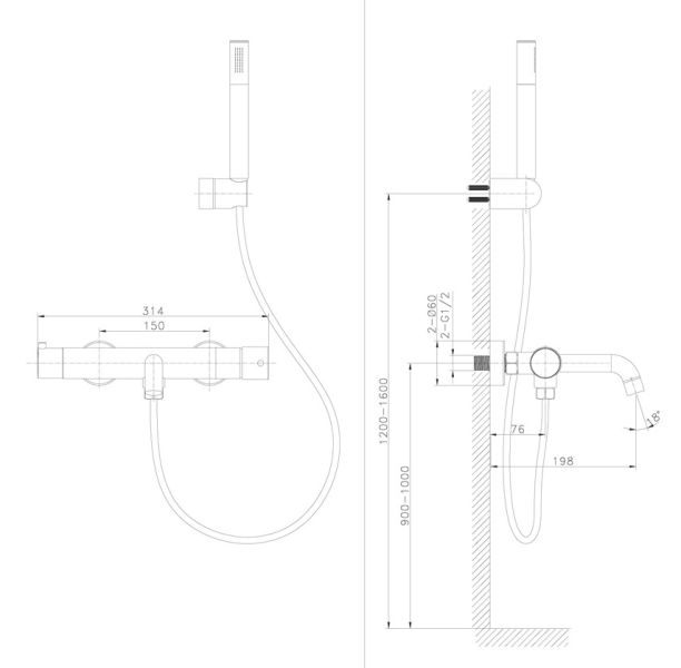 Cмеситель для ванной Raiber premium RPB-003 коллекция Graceful, матовый черныйсмеситель латунный, покрытие матовый черный 3 слоя (специальная технология), держатель ABC пластик,