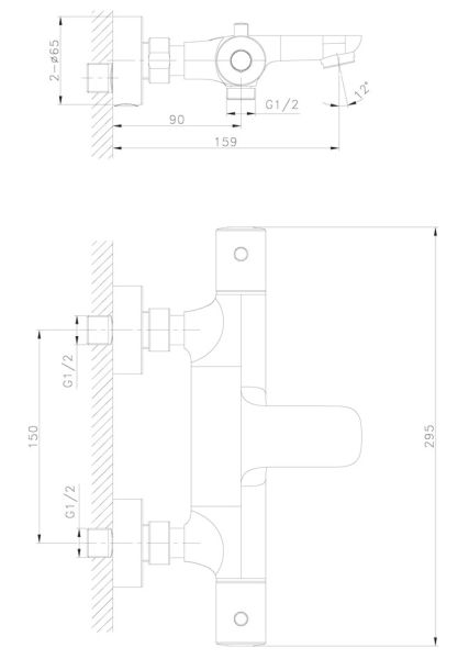 Смеситель для ванны Raiber Graceful RPB-008 с термостатом чёрный матовый