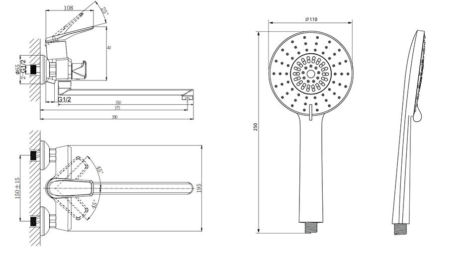 Тип:смеситель для ванны и душа
