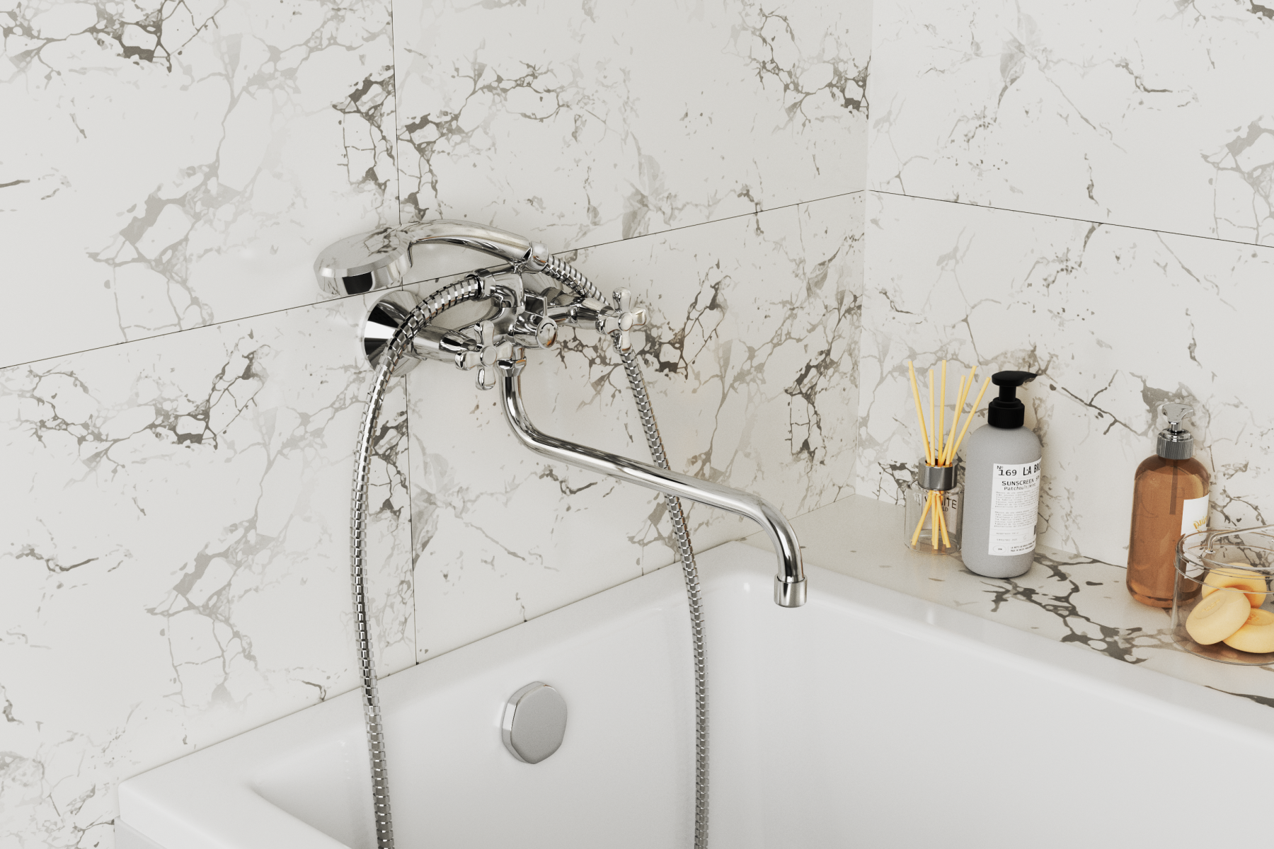 Смеситель для ванны RUSH арт.SA5350-51 с поворотным изливом из коллекции Sakhaline изготовлен из высококачественной латуни и имеет вентильное управление. Излив изготовлен из нержавеющей сталиВ смеситель установлены кран-буксы (RSH502) с керамическими пластинами, а также дивертор (переключатель) с керамическими пластинами. Пластиковый аэратор с нержавеющим корпусом. Излив поворотный 360гр. 280 мм. В комплекте однорежимная душевая лейка и душевой шланг длиной 1,5м., держать душевой лейки, латунные эксцентрики фум-лента, индивидуальный пакет, паспорт, гарантийный талон.