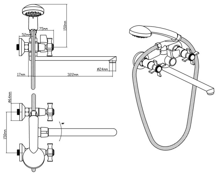 Универсальный смеситель с двумя рукоятками ТМ BOOU избавит от лишних трат и помо-жет освободить место в ванной комнате. Модель оснащена длинным прямым изливом, что позволяет удобно использовать его над раковиной и прилегающей к ней ванной. В комплек-те удобная трехрежимная лейка с гибким шлангом и настенный держатель.