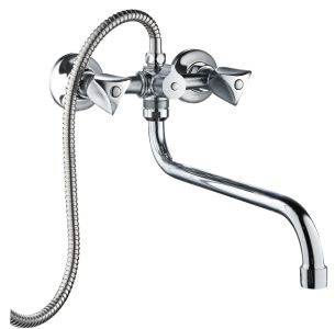 Двуручковый смеситель для ванны из данной серии обладает не отполированным хромированным корпусом и полированным длинным изливом, удобен и практичен в использовании.
