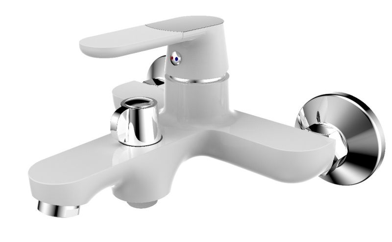 Одноручковый смеситель для ванны с коротким литым изливом в элегантном белом оттенке станет оригинальным дизайнерским решением для вашего интерьера.