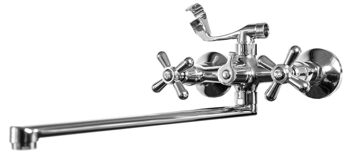 Двуручковый смеситель для ванны и душа с длинным поворотным изливом оптимально подойдет для каждой ванной комнаты.