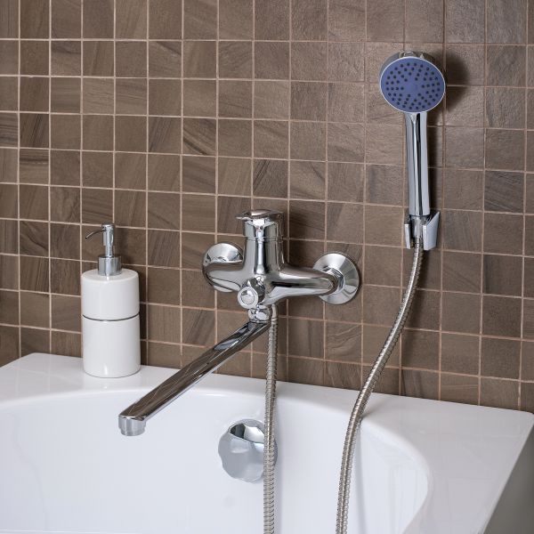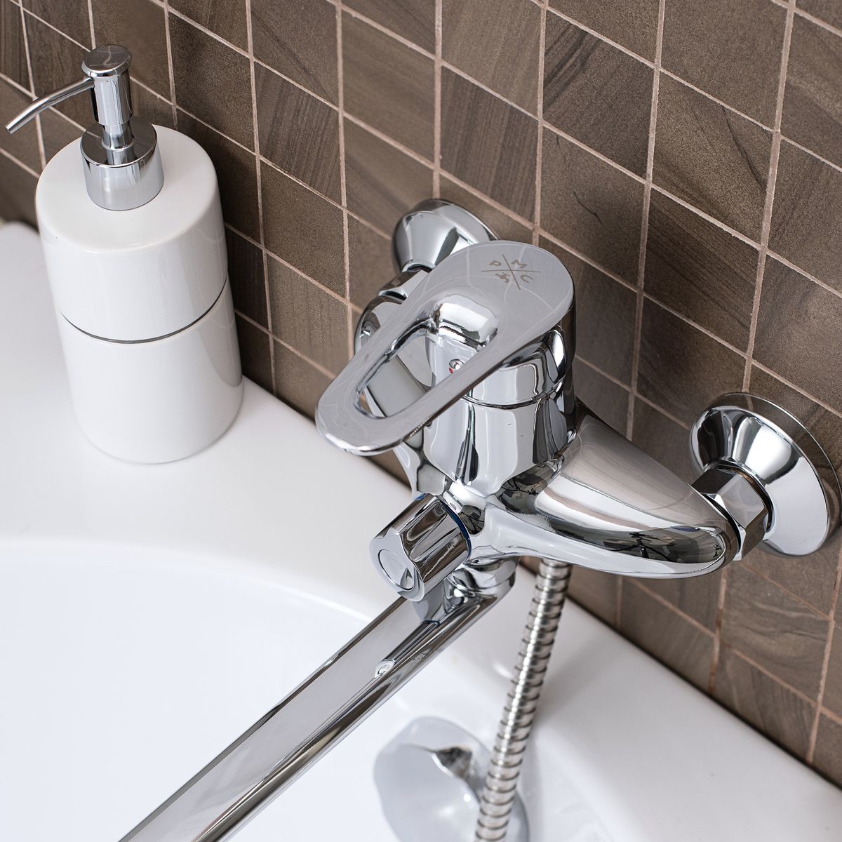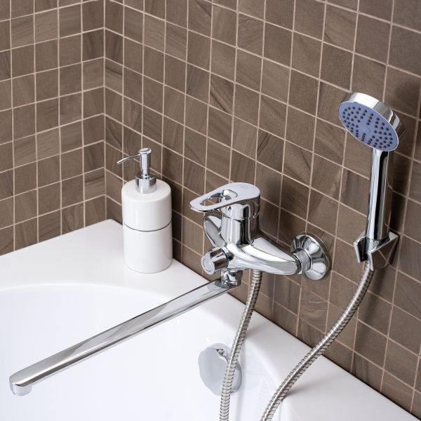 Однорычажный смеситель для ванной комнаты прекрасно впишется в интерьер. Обладает коротким фиксированным изливом, что отлично подходит для отдельно стоящей ванной.