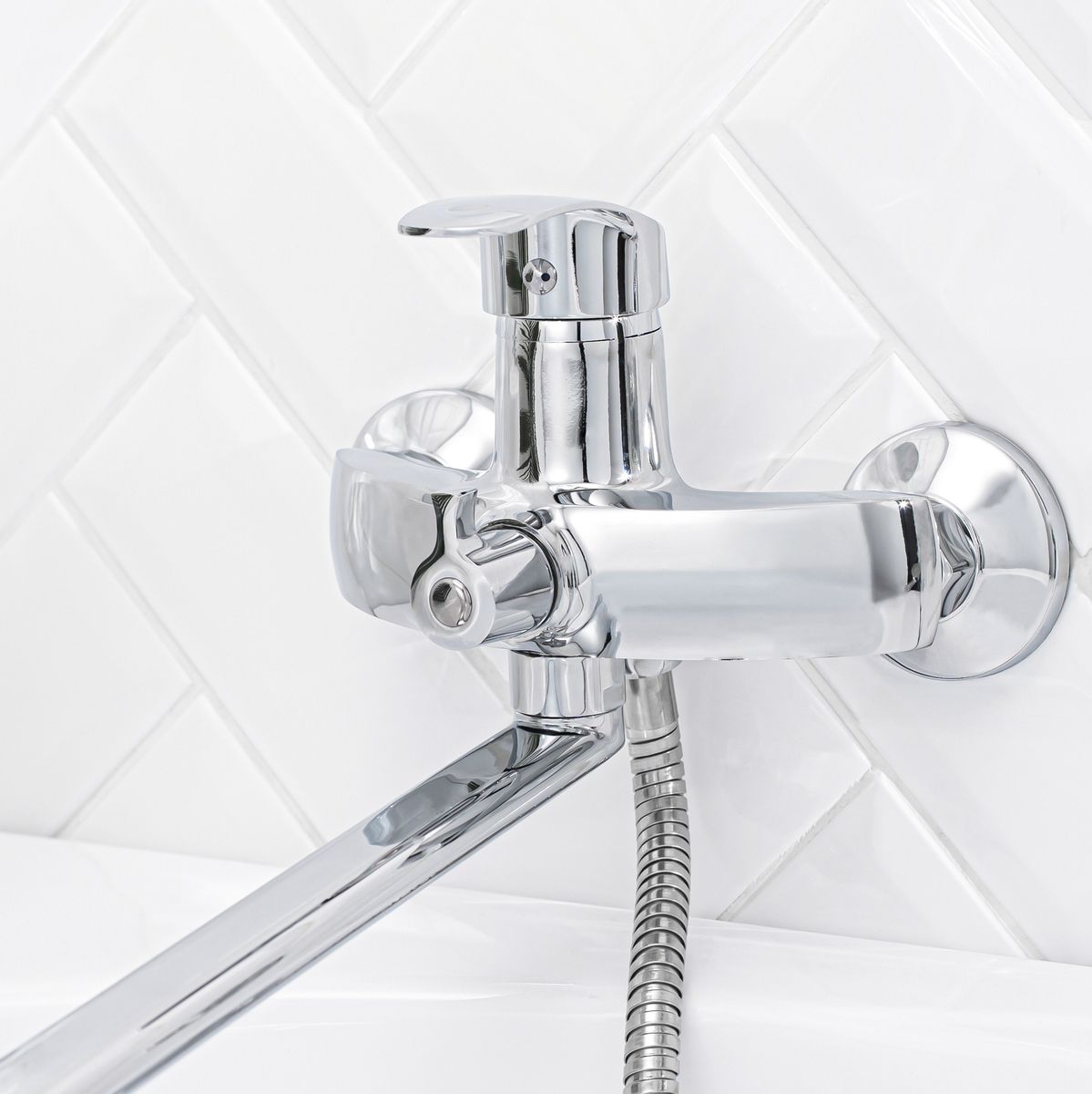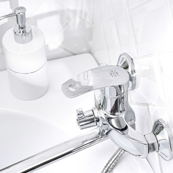 Оригинальный однорычажный смеситель для ванной комнаты с хромовым покрытием - это гармоничное сочетание плавности линий и удобства в использовании.
