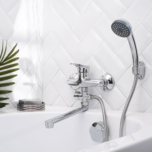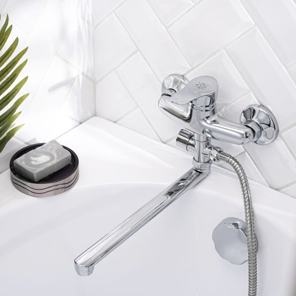 Однорычажный настенный смеситель для ванны с длинным изливом с дивертором это не только стильный акцент вашего интерьера, но и удобство в использовании на долгие годы.