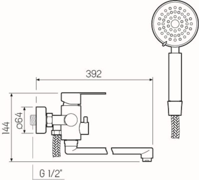 Смеситель для ванны с душем РМС SUS124-006EP нержавеющая сталь