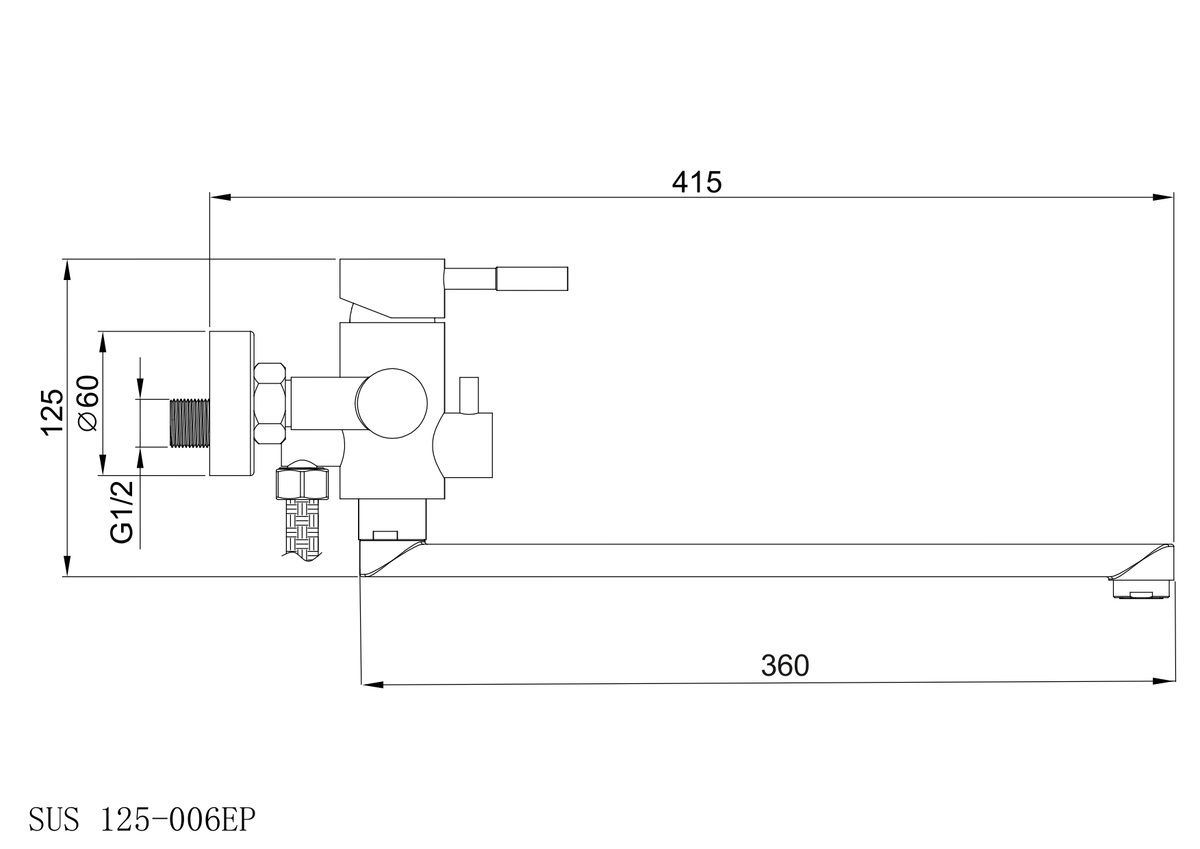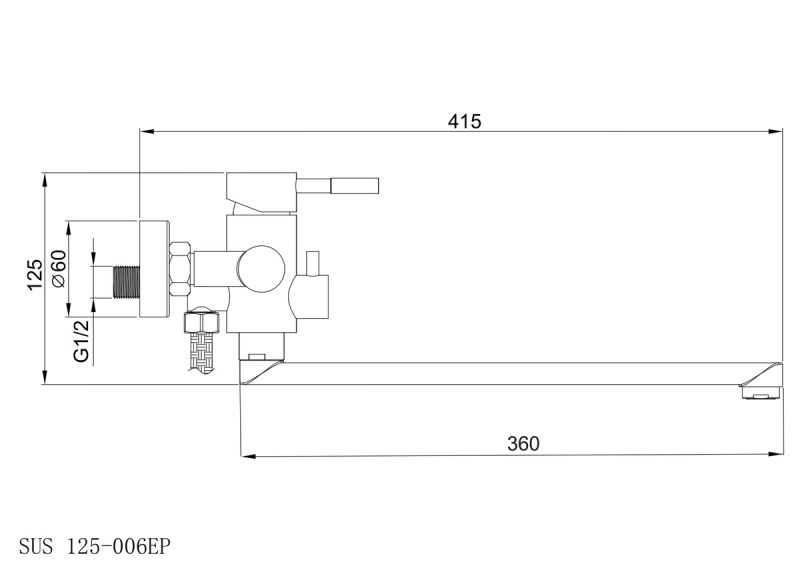 Смеситель для ванны с душем РМС SUS125-006EP нержавеющая сталь