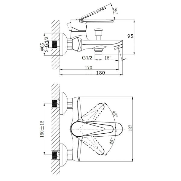 Тип:смеситель для ванны и душа