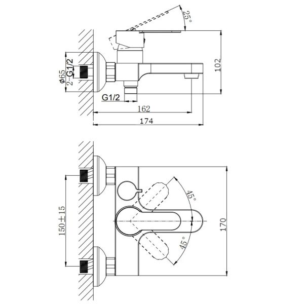 Тип:смеситель для ванны и душа