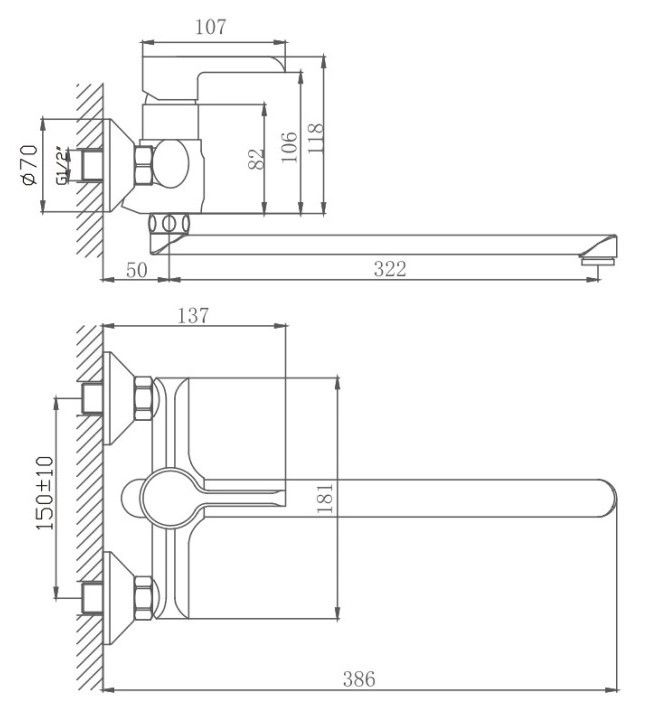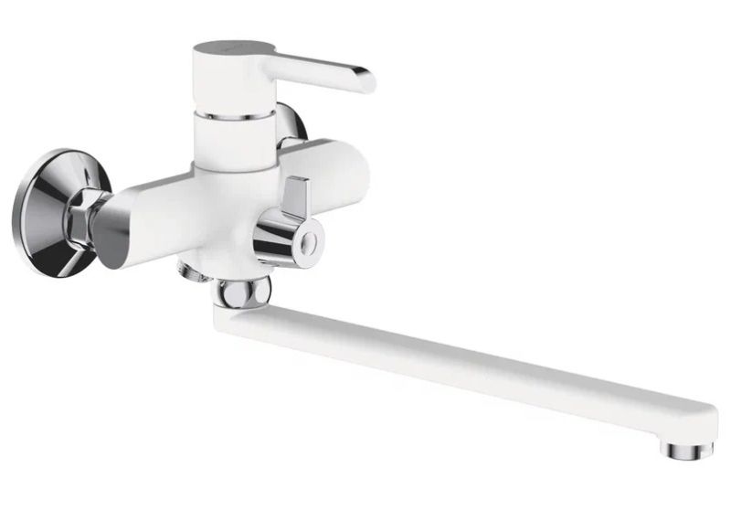 Смеситель для ванны Shevanik S6022F, белый/хром.Душевой гарнитур в комплекте: да.Управление: рычажное.Монтаж: настенный.