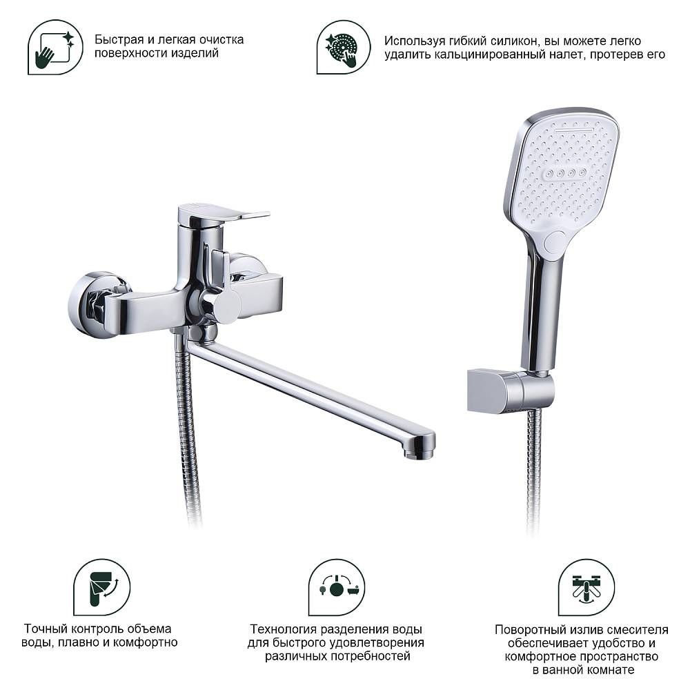 Смеситель для ванны Splenka S31.22 универсальный. Цвет: хром. Материал: латунь. Управление: однорычажное. Механизм: керамический картридж. Излив: поворотный. Аэратор. Переключатель ванна/душ. Стандарт подводки: G 1/2. Отверстия для монтажа: 2. Монтаж: на стену. Душевая лейка - 3 режима.