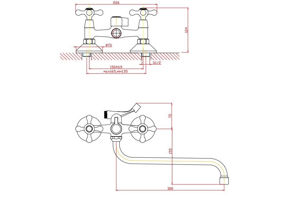 Смеситель для ванны/душа Orange Classic Pro M72-222cr с душевым набором