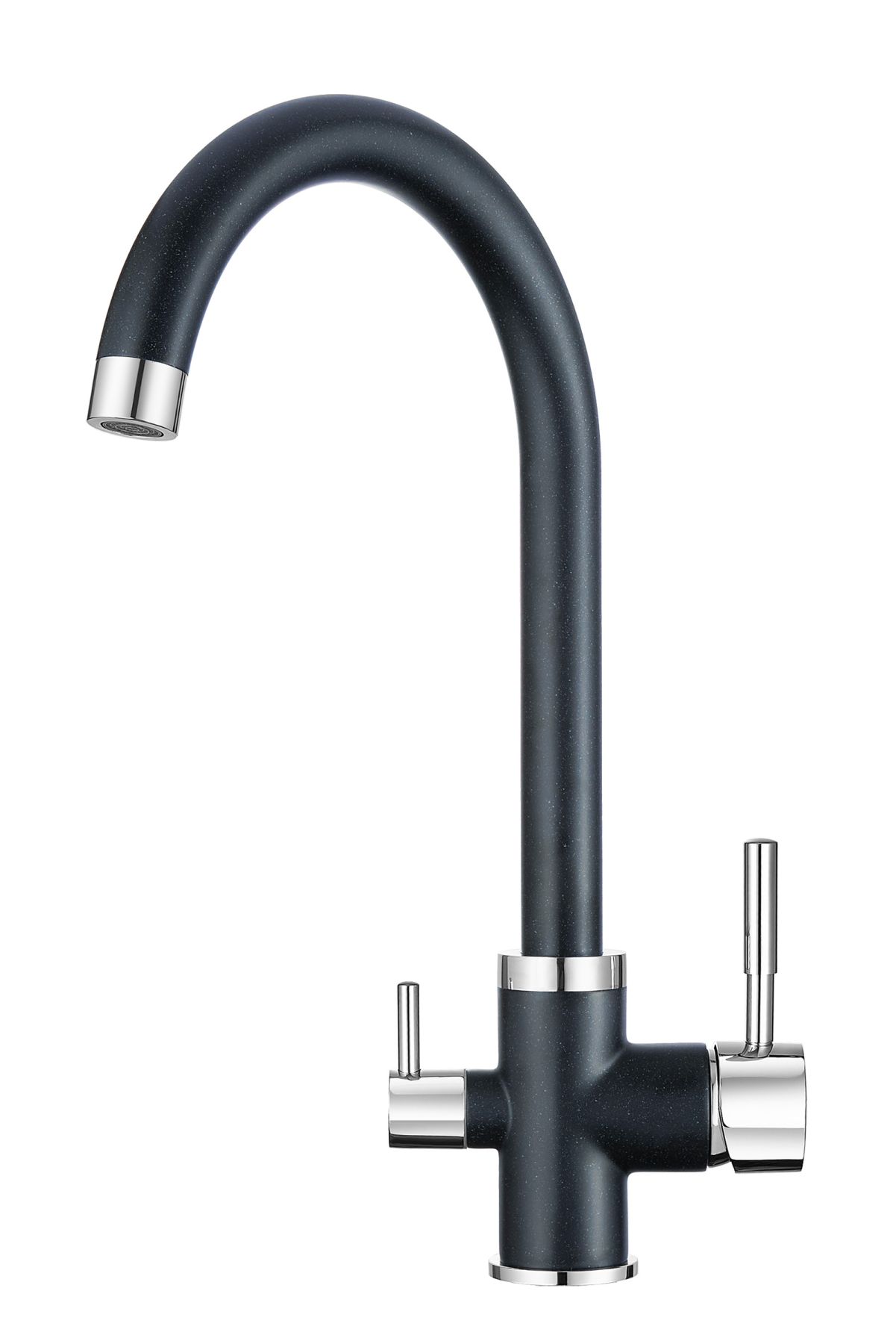 Смеситель для кухонной мойкиЦветовая гамма: Алюминиум, Классик, Антик, Песок, Пирит, Базальт, Арктик, Эспрессо, Графит, Черный, ШварцГибкая подводка (3 шт.); набор для крепления; прокладки уплотнительные (2 шт.); аэраторГарантийный срок от производителя - 5 лет