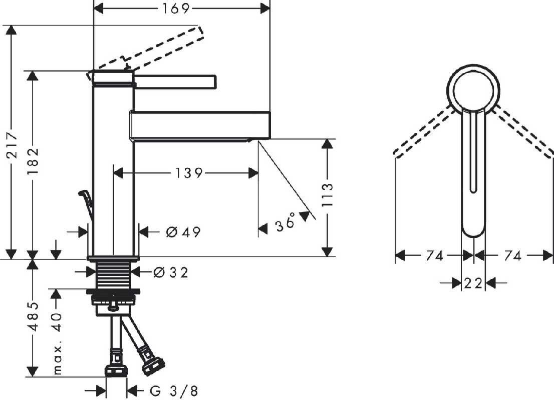Смеситель для раковины Hansgrohe Finoris, с донным клапаном, чёрный матовый, 76020670ComfortZone 110 мм