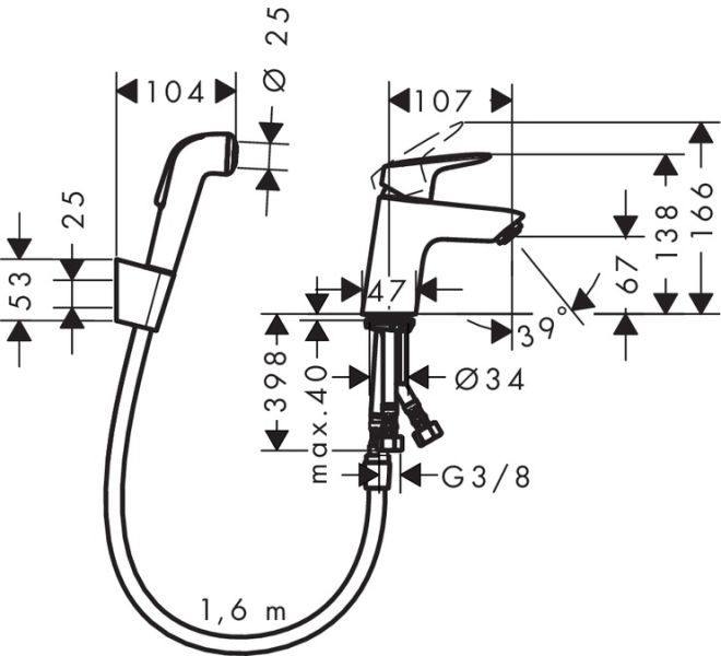 Смеситель Hansgrohe Logis 71290000 для раковины с гигиеническим душем