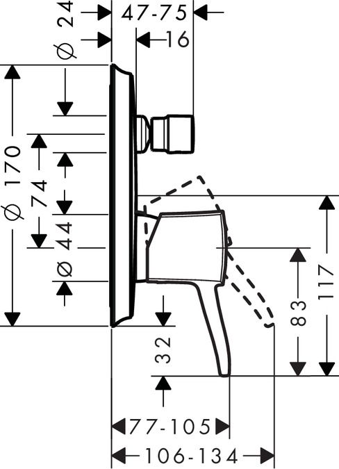 Смеситель Hansgrohe Metropol 31345000 для душа встраиваемый