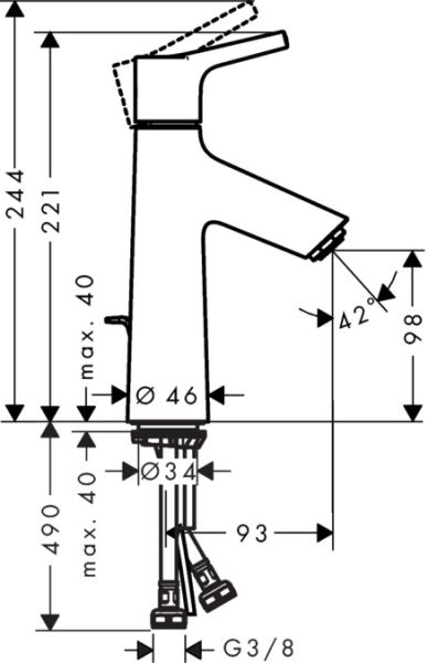 Смеситель для раковины 100, однорычажный, со сливным гарнитуром Hansgrohe Тalis S New 72020000 по выгодной ценеХарактеристики продукта: -ComfortZone 100