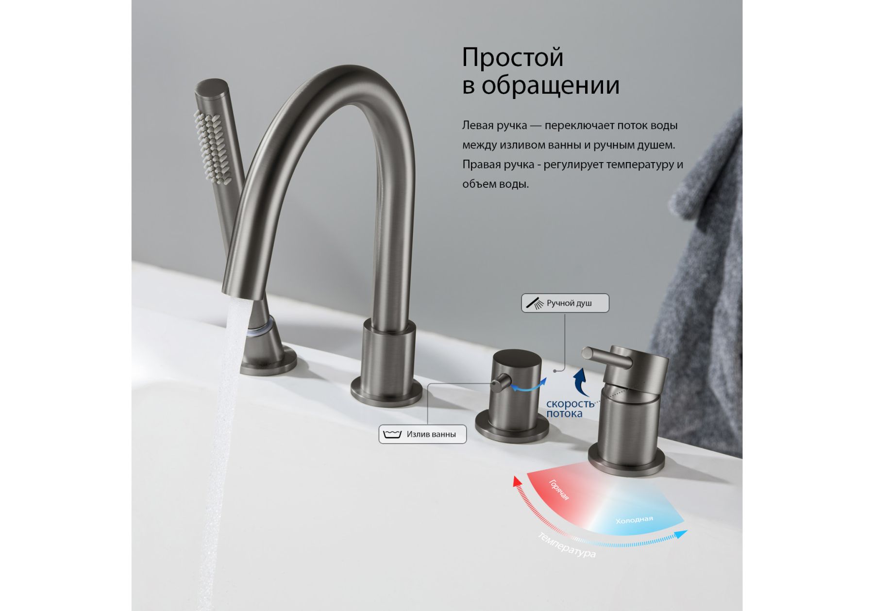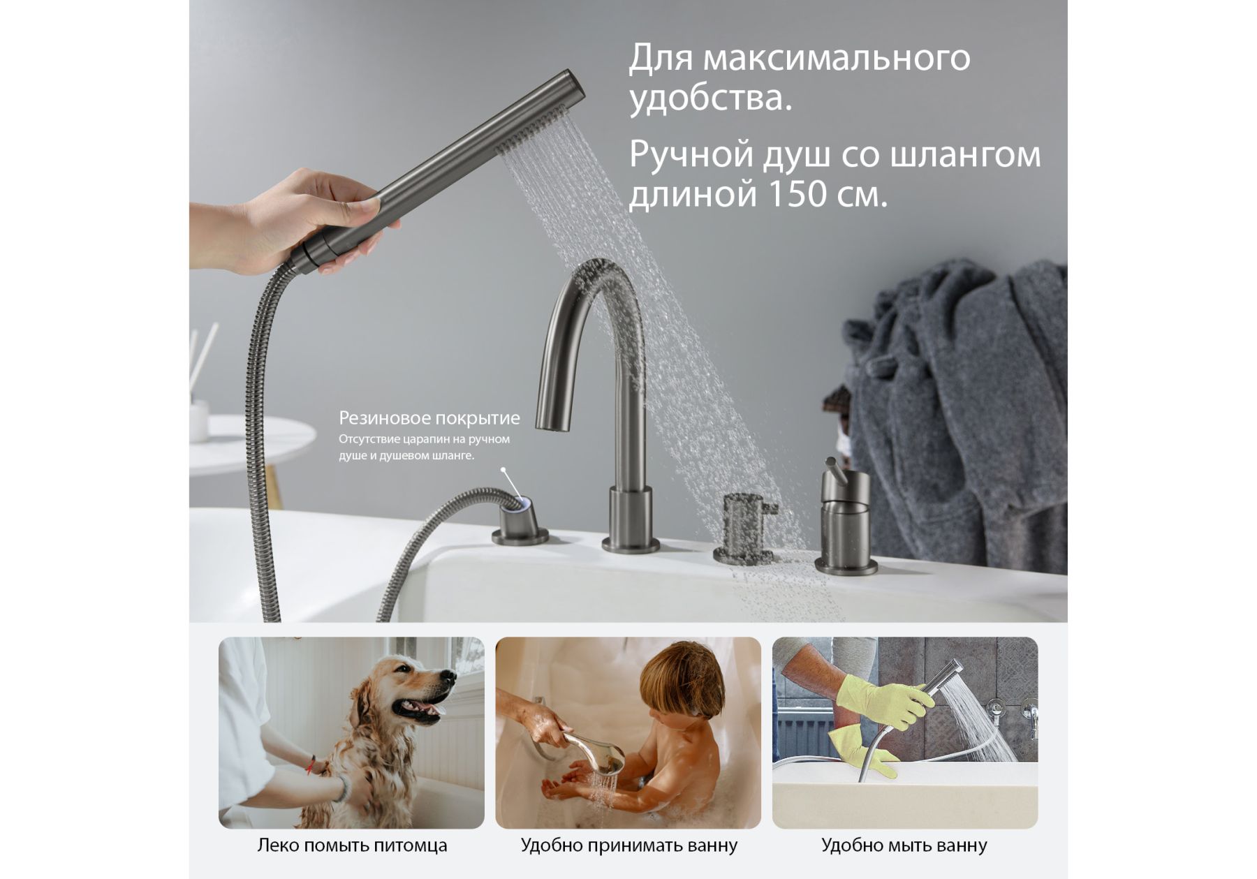 • В комплекте ручная лейка и шланг 1,5м